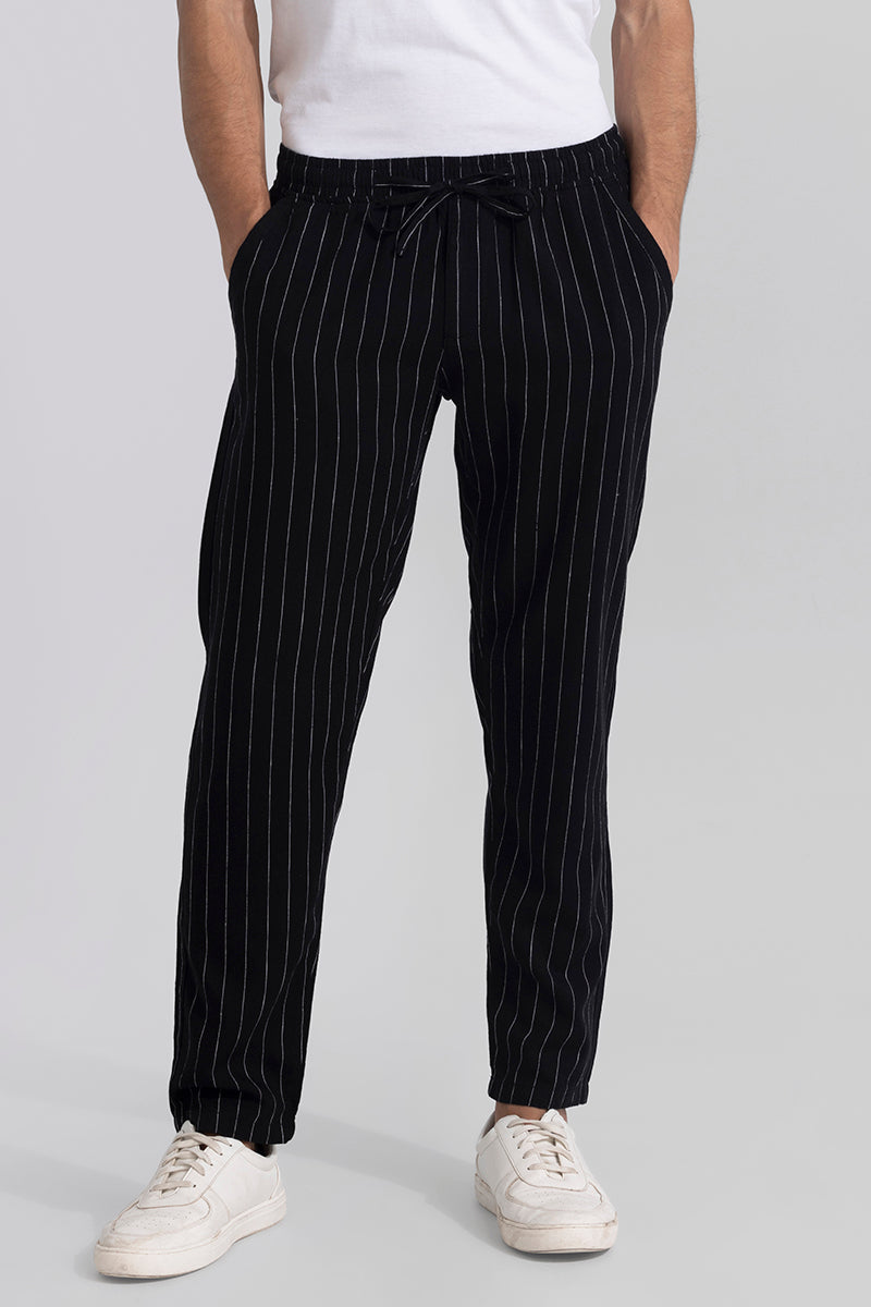 Buy Men's Aurabreeze Jet Black Linen Pant Online | SNITCH