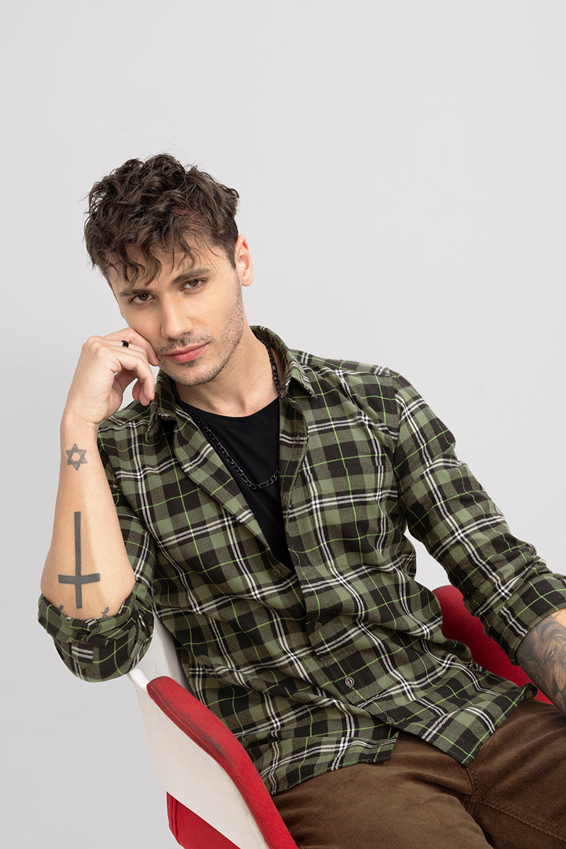 Buy Men's Battle Checks Green Shirt Online | SNITCH