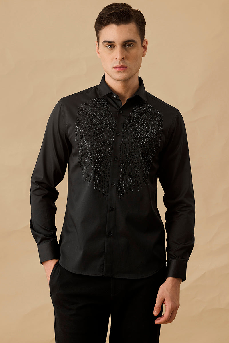 Buy Men's Black Embellished Slim Fit Snitch LUXE Shirt Online | Snitch – SNITCH