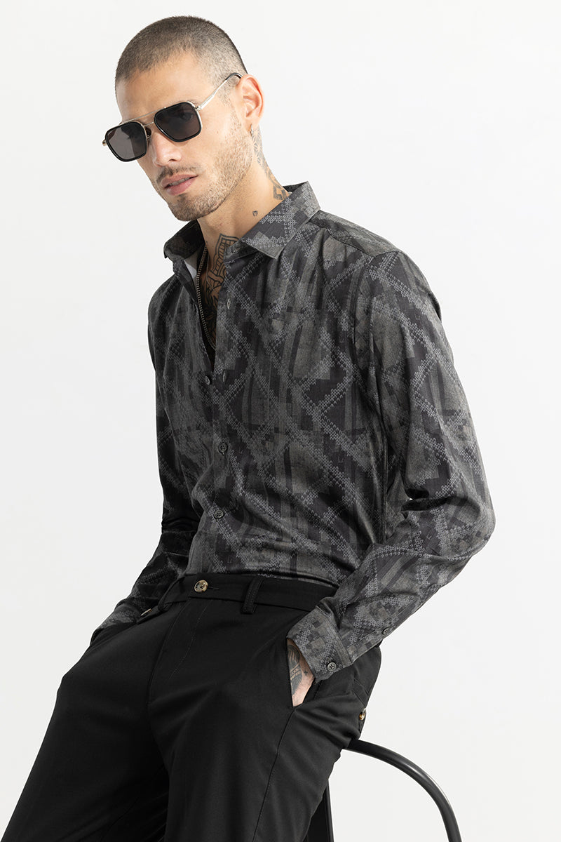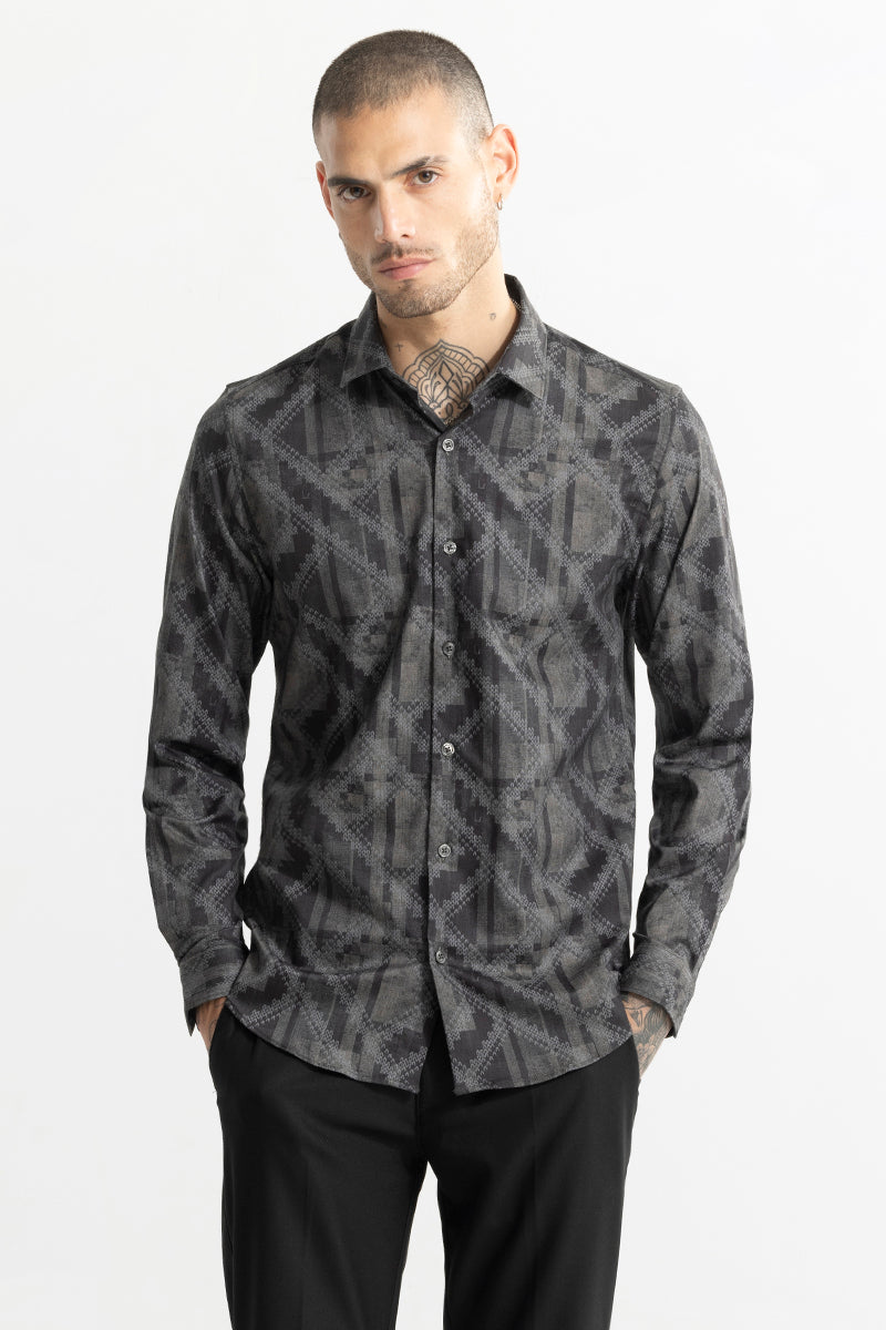 Buy Men's Box Motif Grey Shirt Online | SNITCH