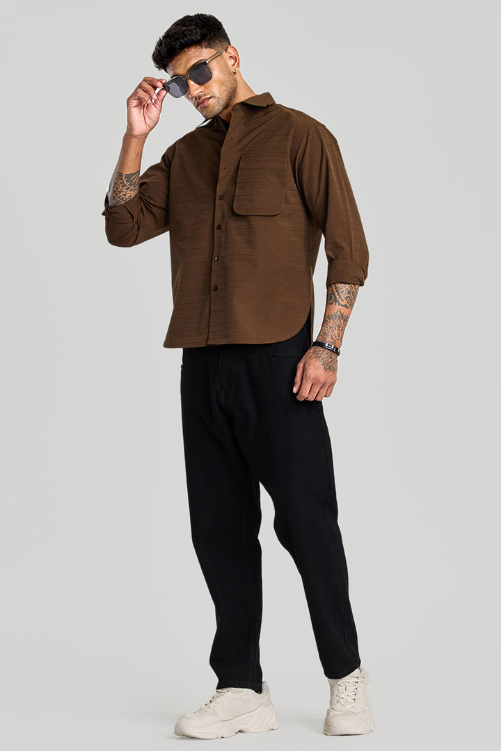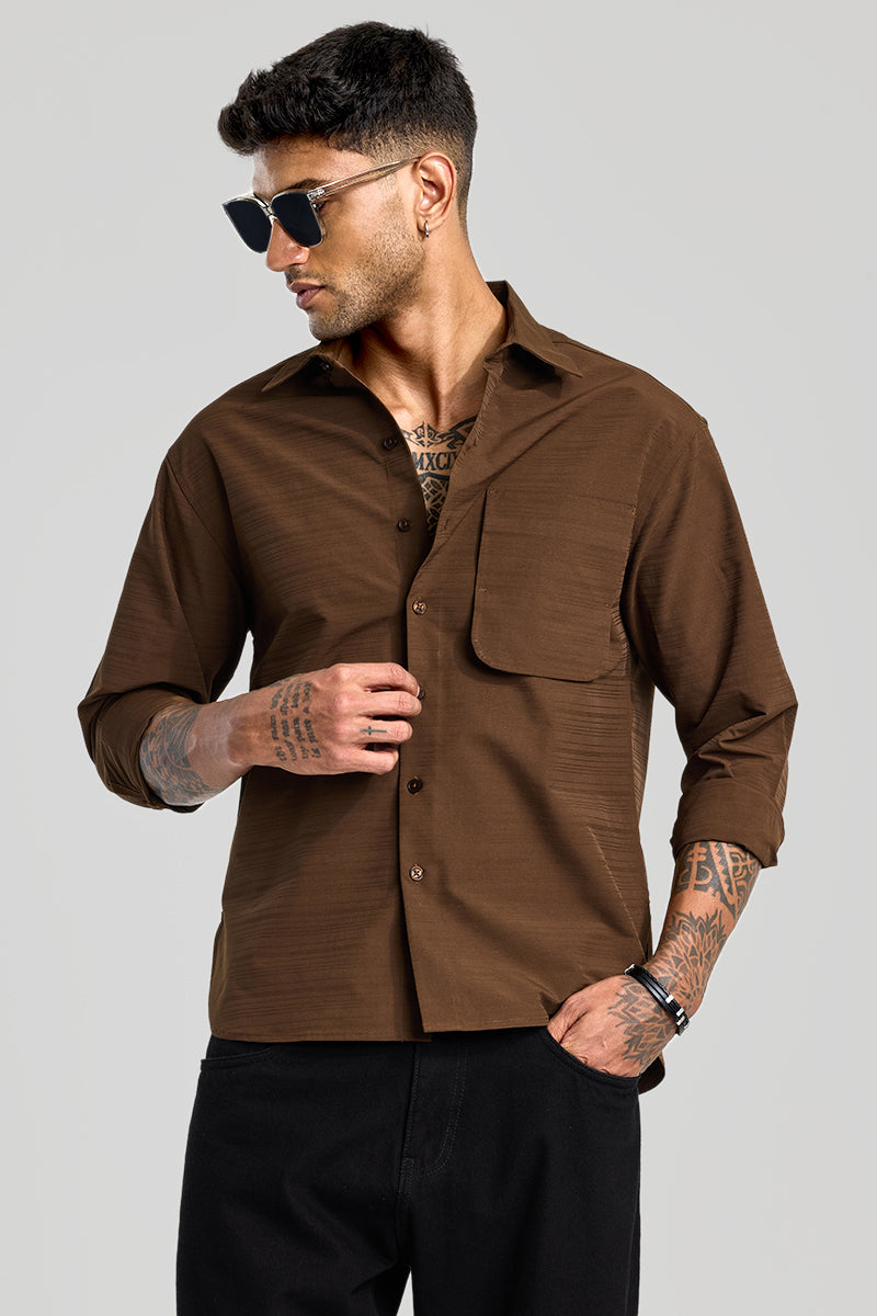 Buy Men's Brown Stripes Relaxed Fit Overshirt Online | Snitch – SNITCH