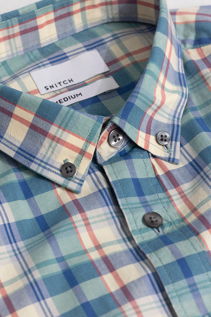 Buy Men's Celestial Check Sea Green Shirt Online | SNITCH