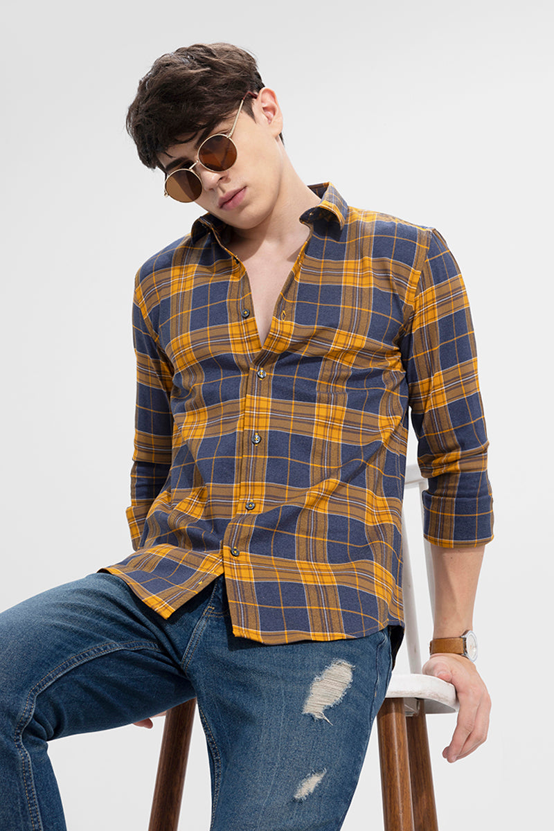Buy Men's Everyday Checks Mustard Shirt Online | SNITCH