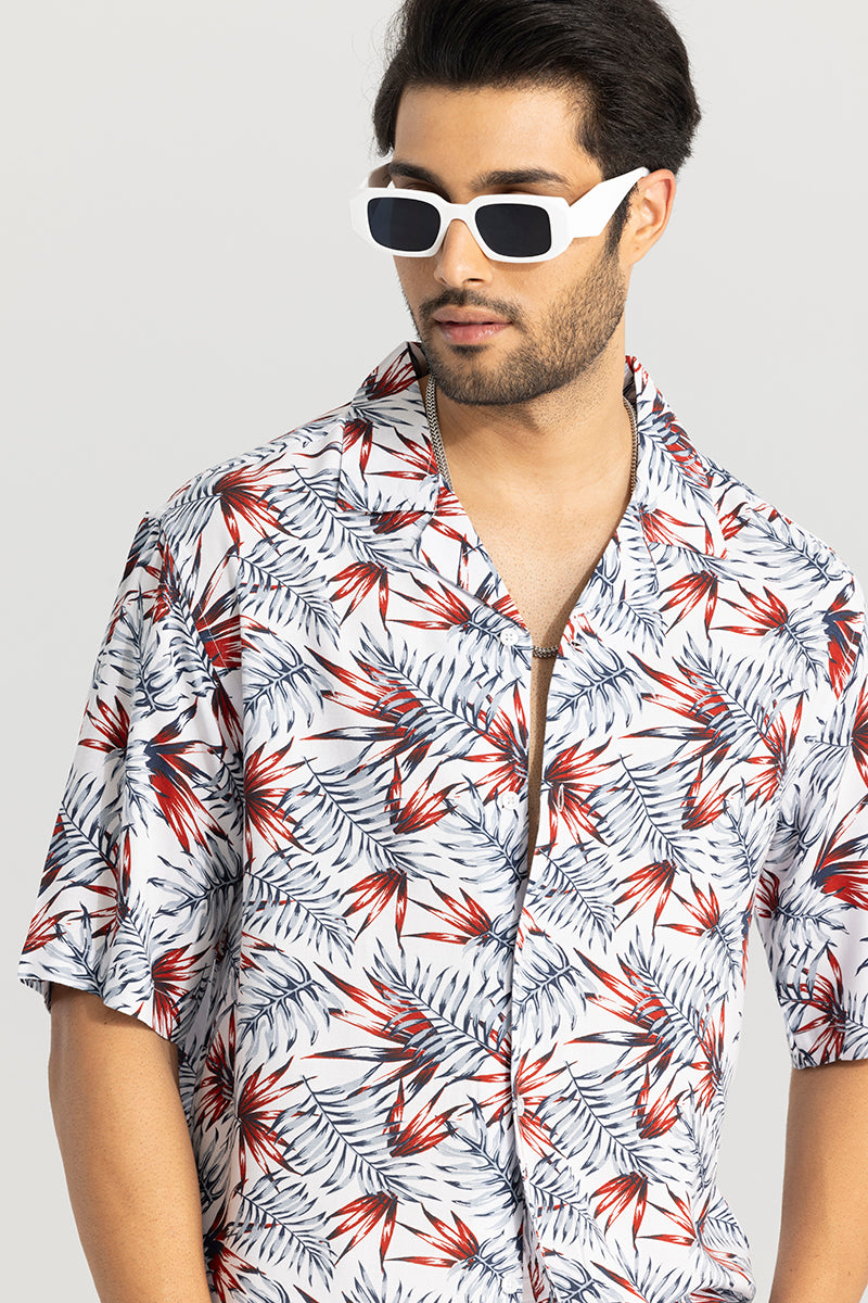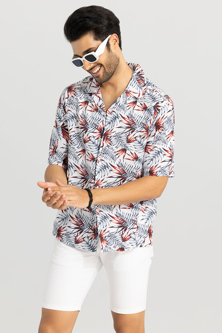 Buy Men's Exotic flora White Oversized Shirt Online | SNITCH