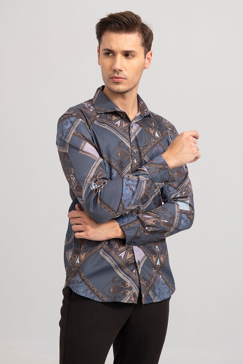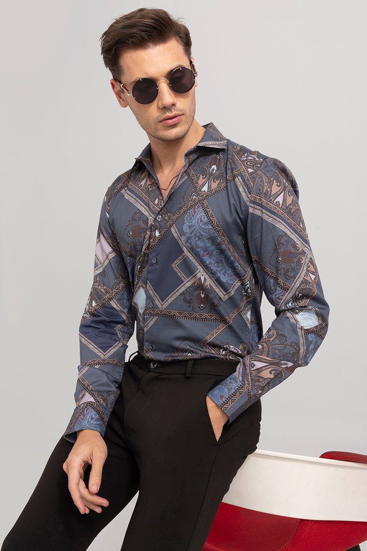 Buy Men's Greek Bandana Grey Shirt Online | SNITCH