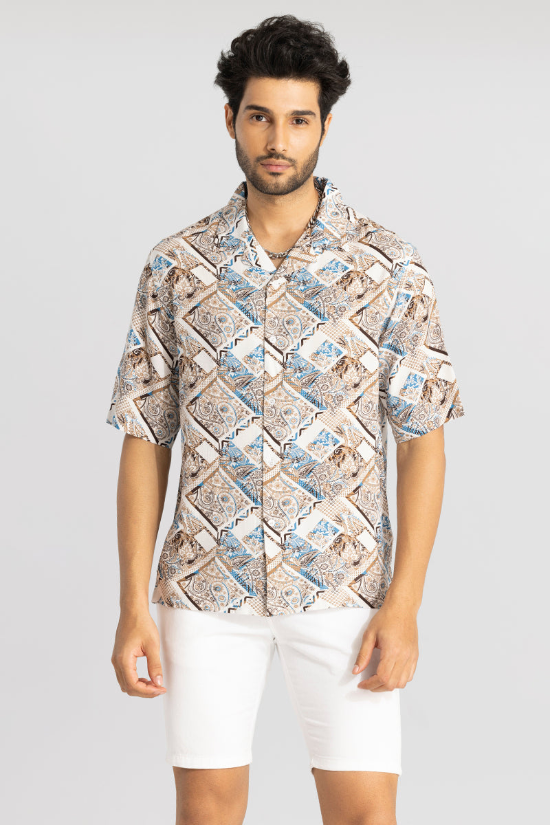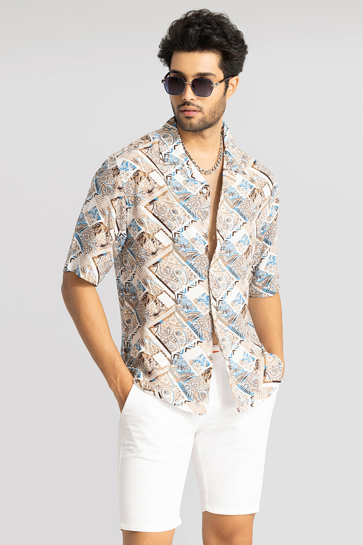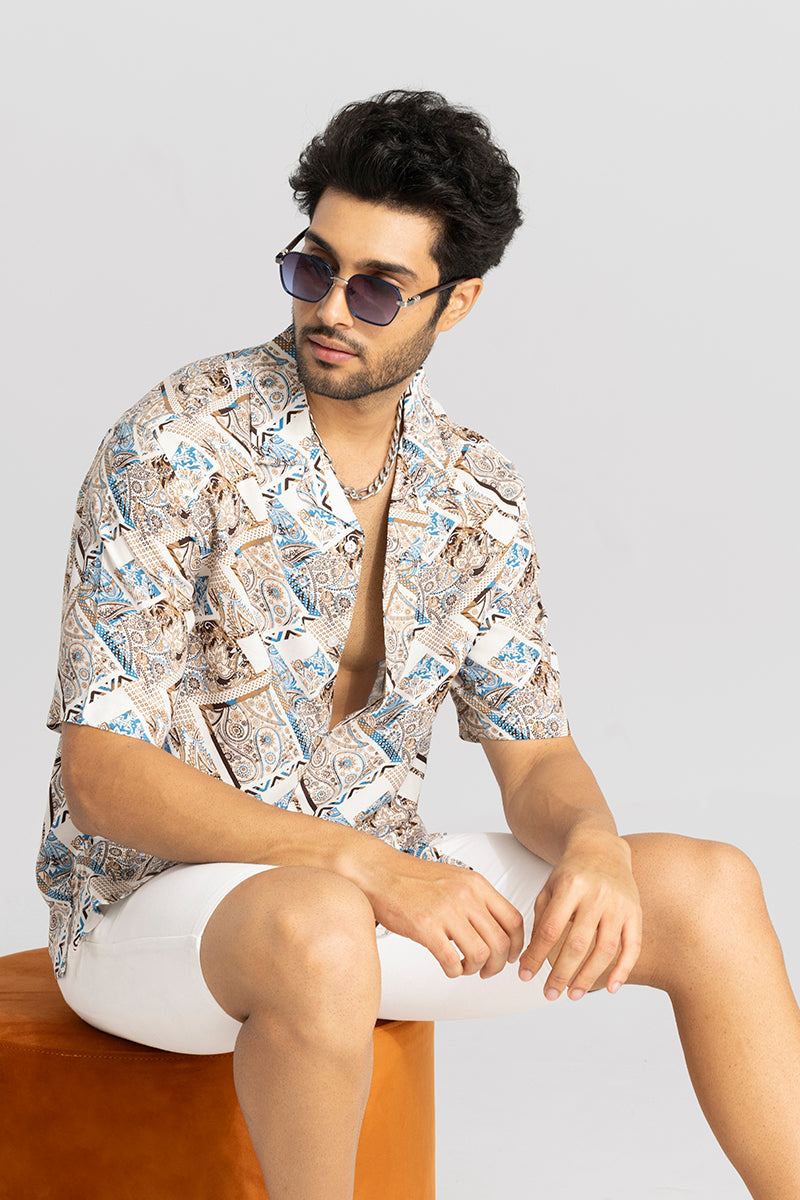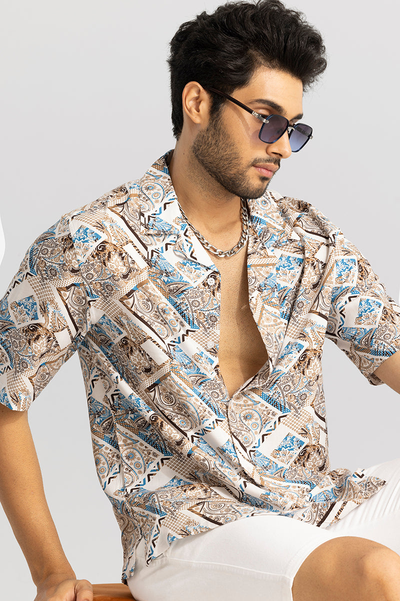 Buy Men's Hexo Vector Brown Oversized Shirt Online | SNITCH