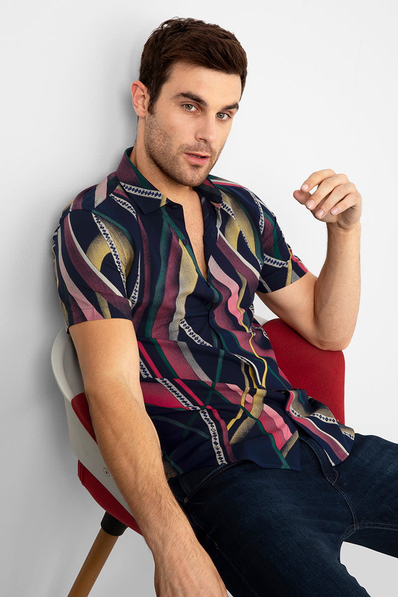 Buy Men's Loop Navy & Red Shirt Online | SNITCH