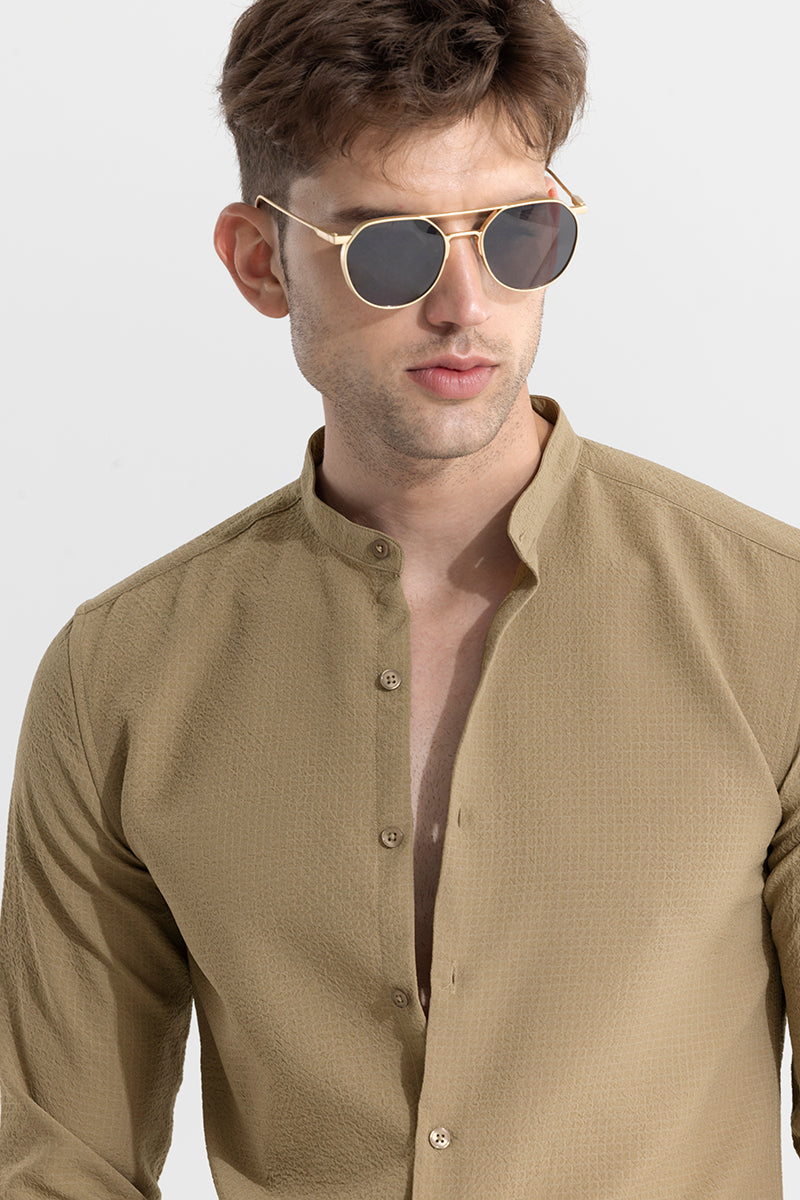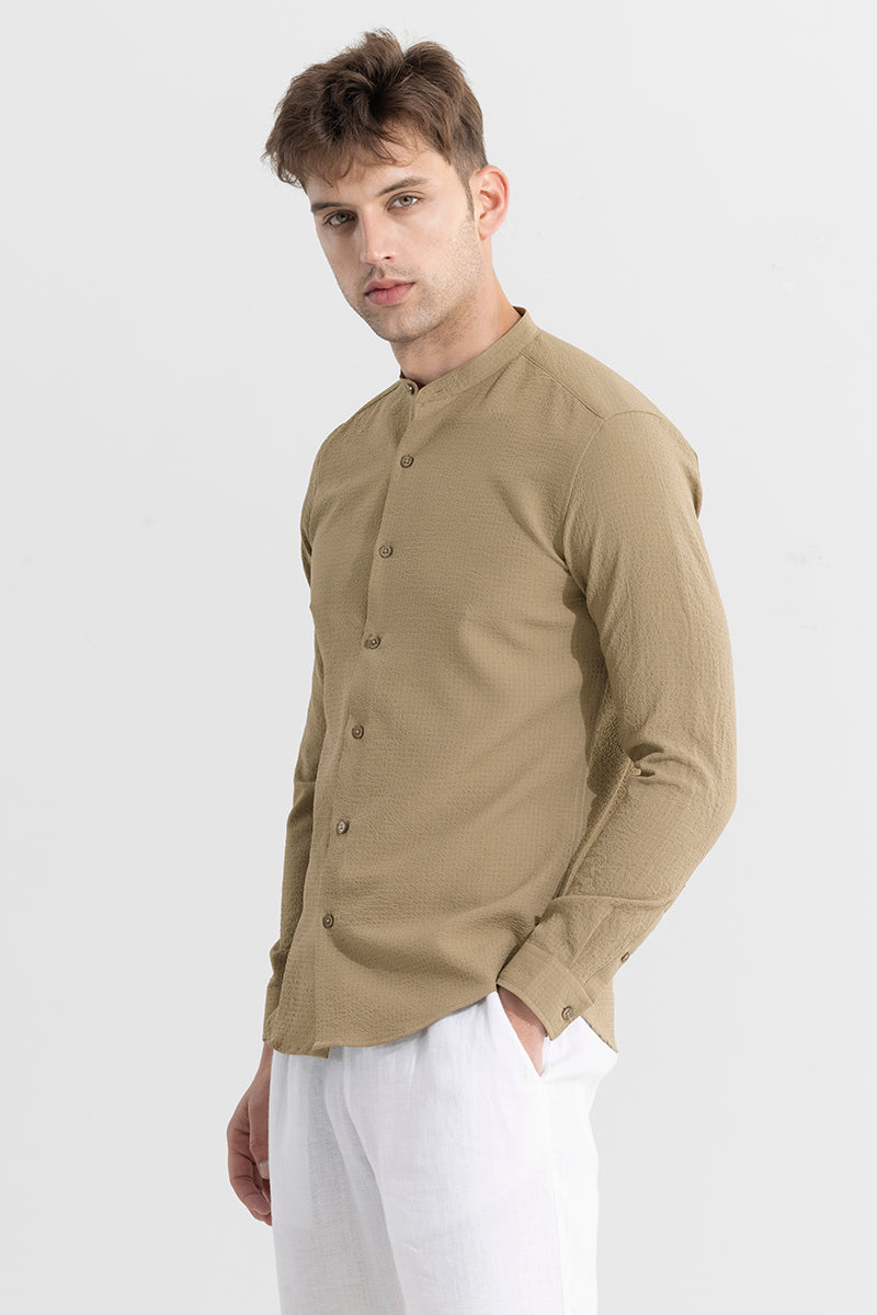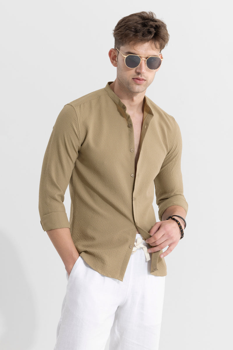 Buy Men's Mandarin Neckline Beige Shirt Online | SNITCH