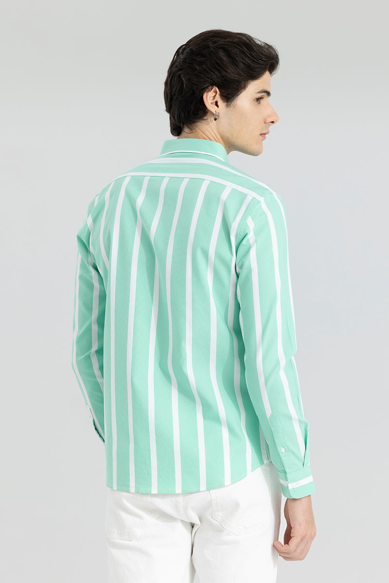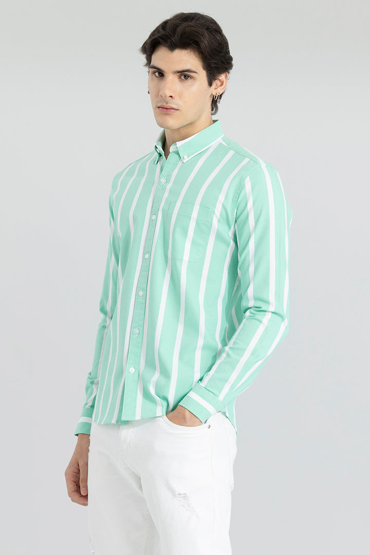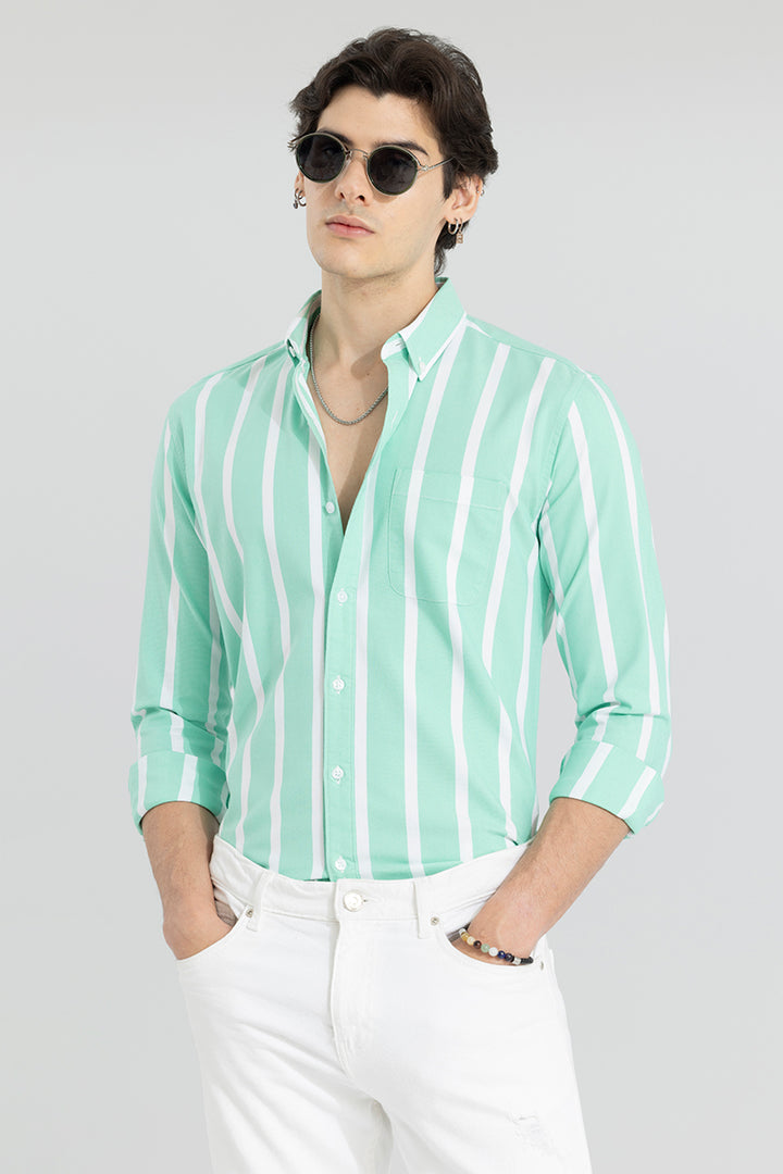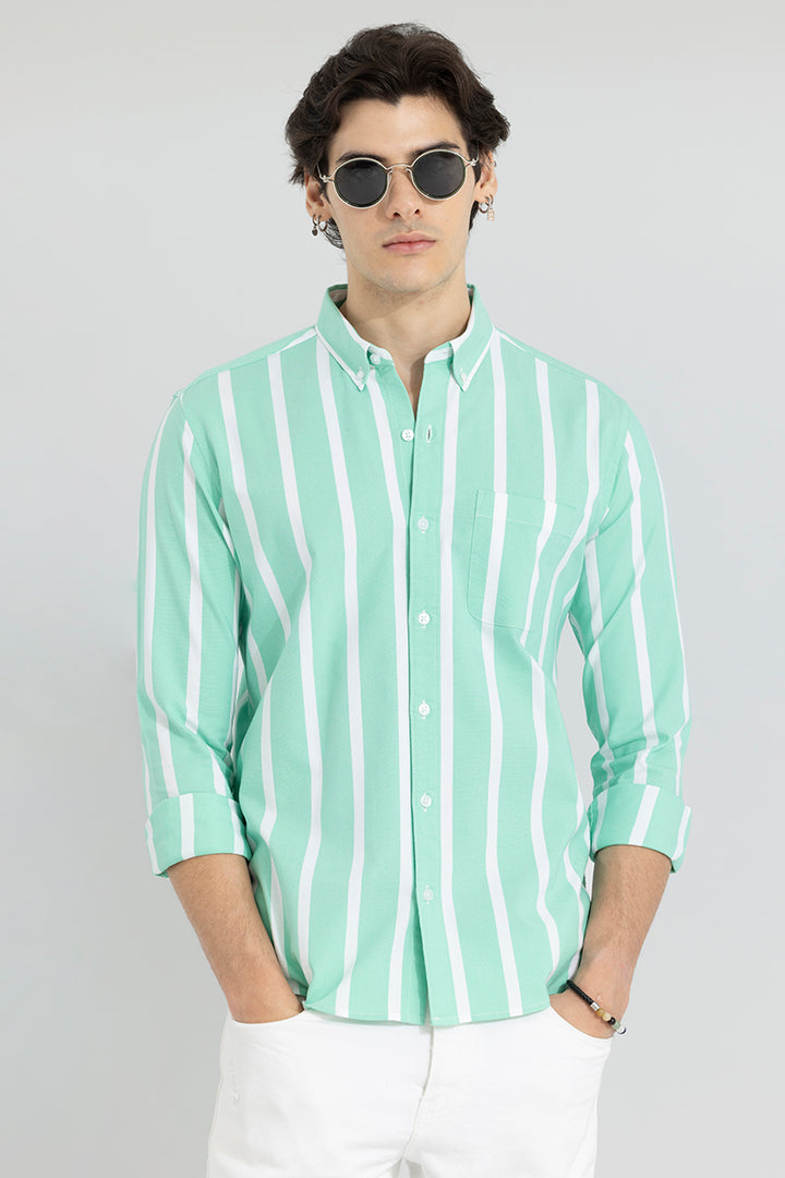 Buy Men's Pencil Stripe Green Shirt Online | SNITCH