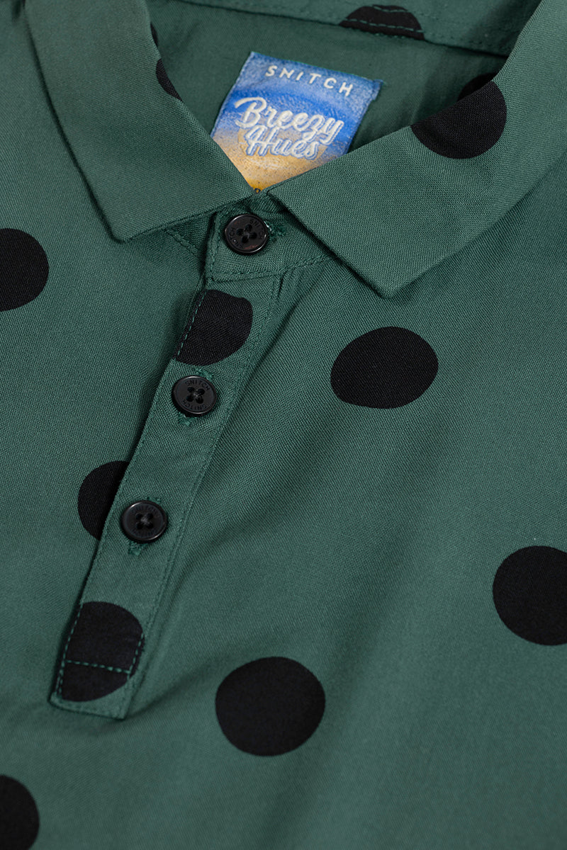 Buy Men's Polka Dotted Dark Green Polo T-Shirt Online | SNITCH