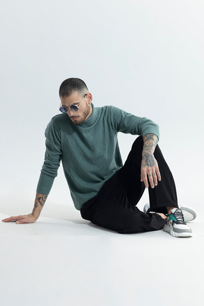 Buy Men's Rhomboid Teal Green Turtle Neck Sweater Online | SNITCH