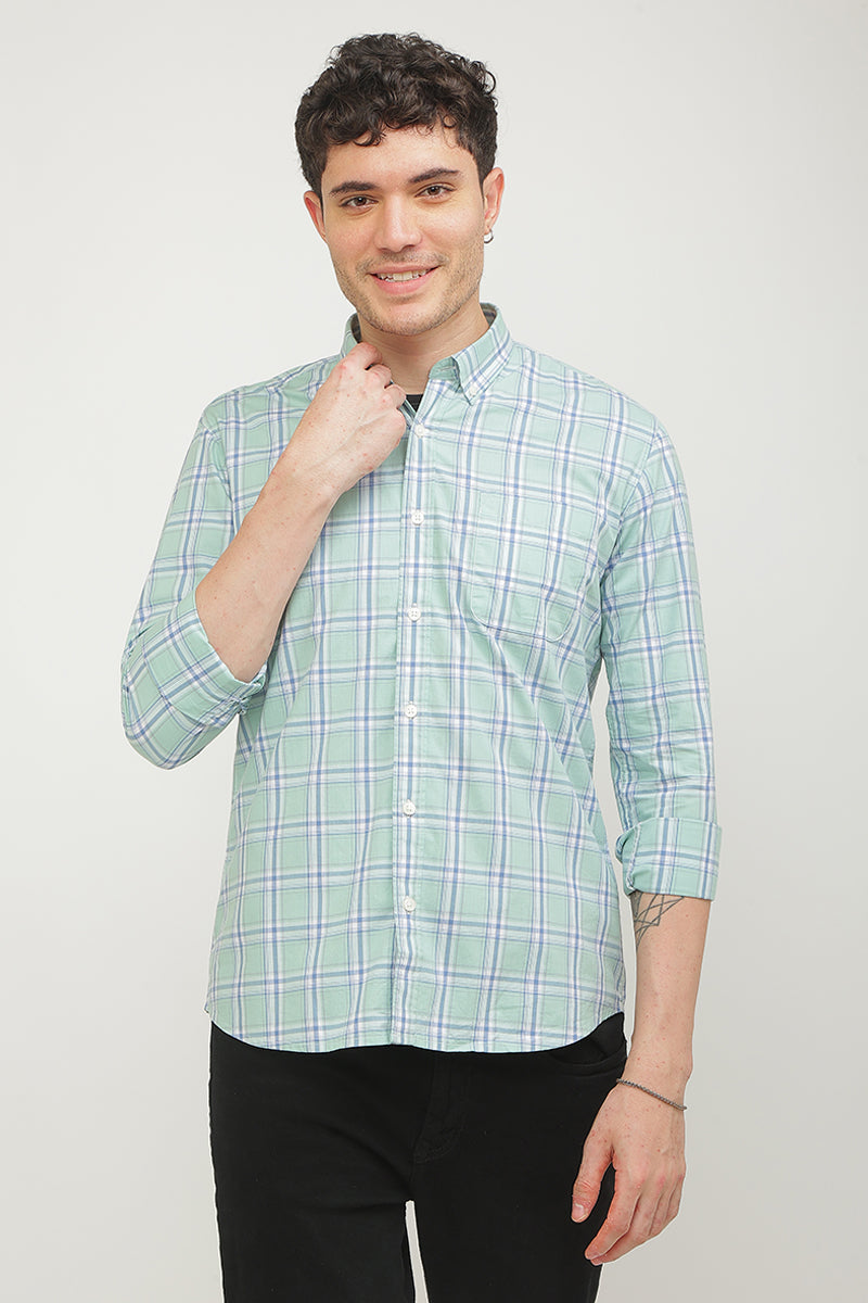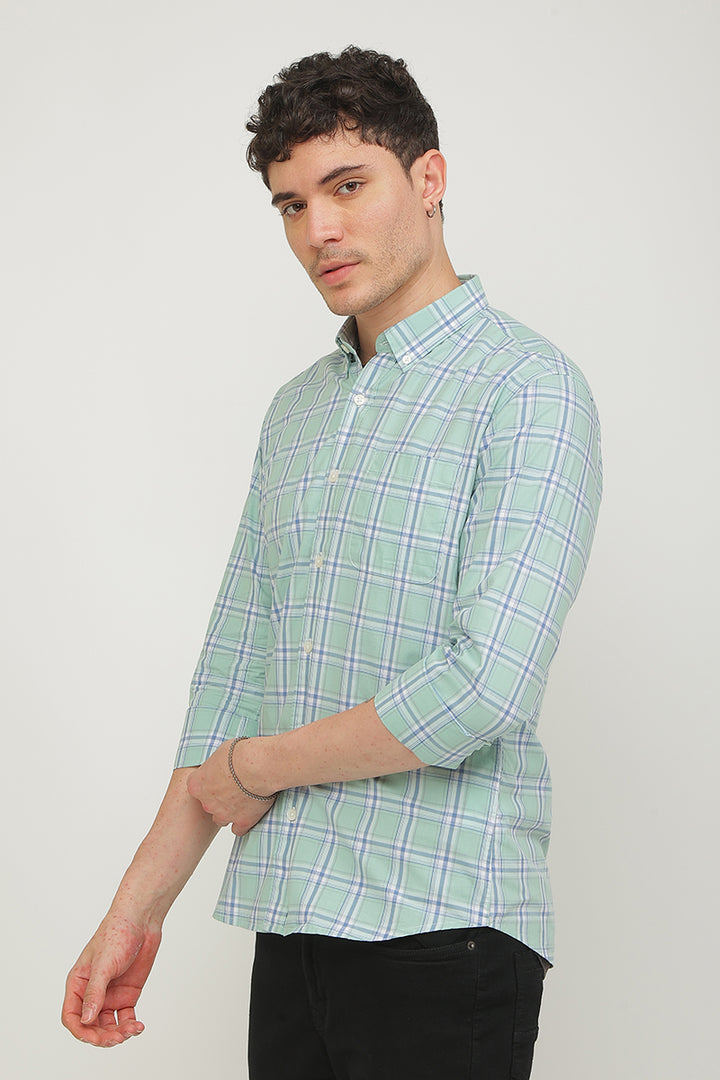 Buy Men's Saiber Checks Light Green Shirt Online | SNITCH