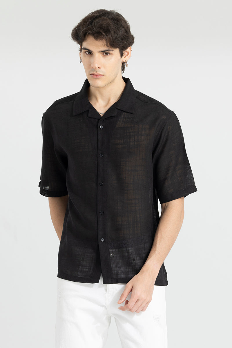 Buy Men's Sheer Gaze Black Oversized Shirt Online | SNITCH