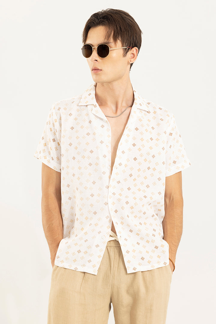 Buy Men's Sketch Design Cream Linen Shirt Online | SNITCH