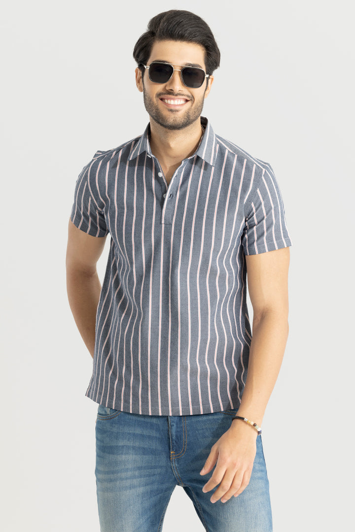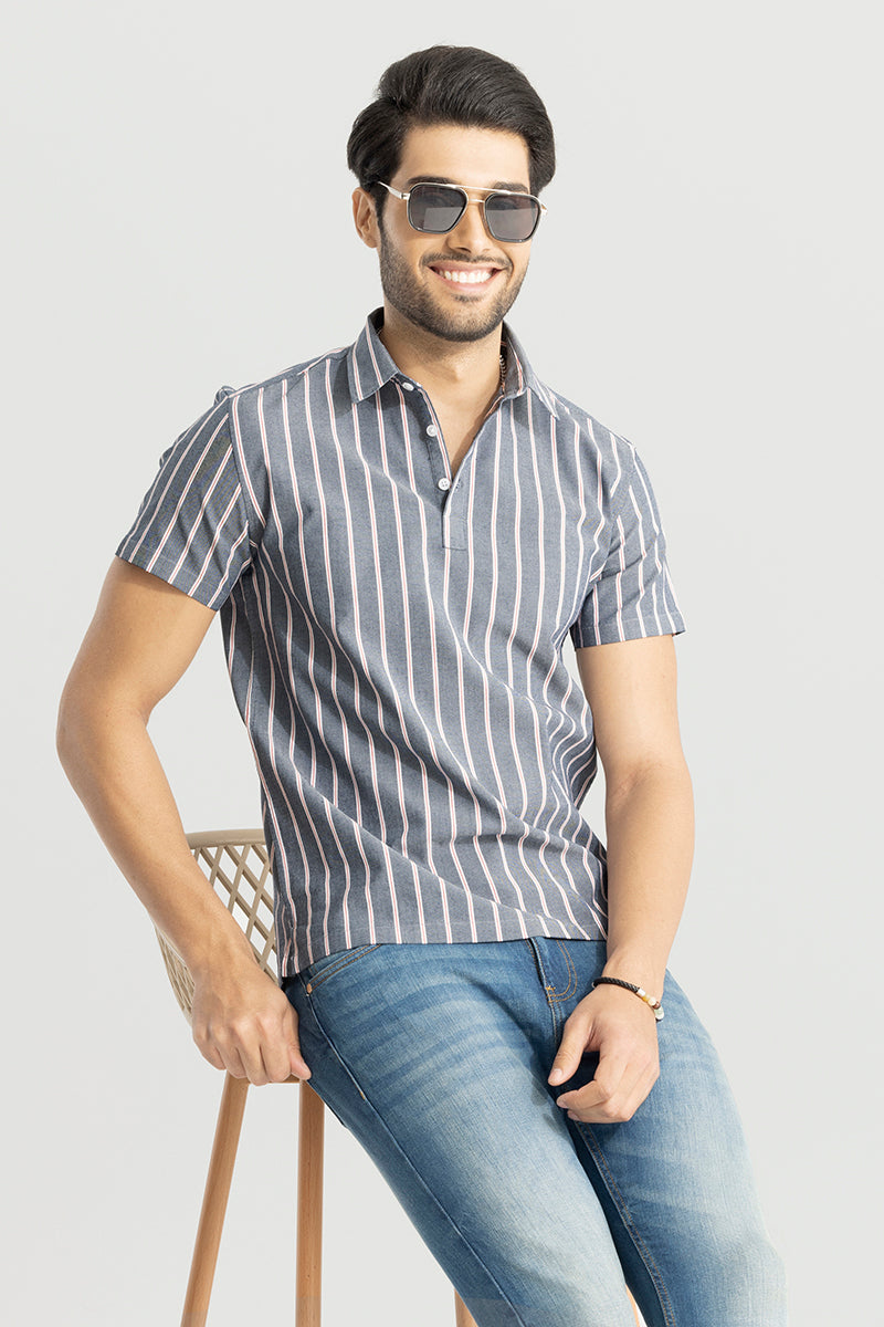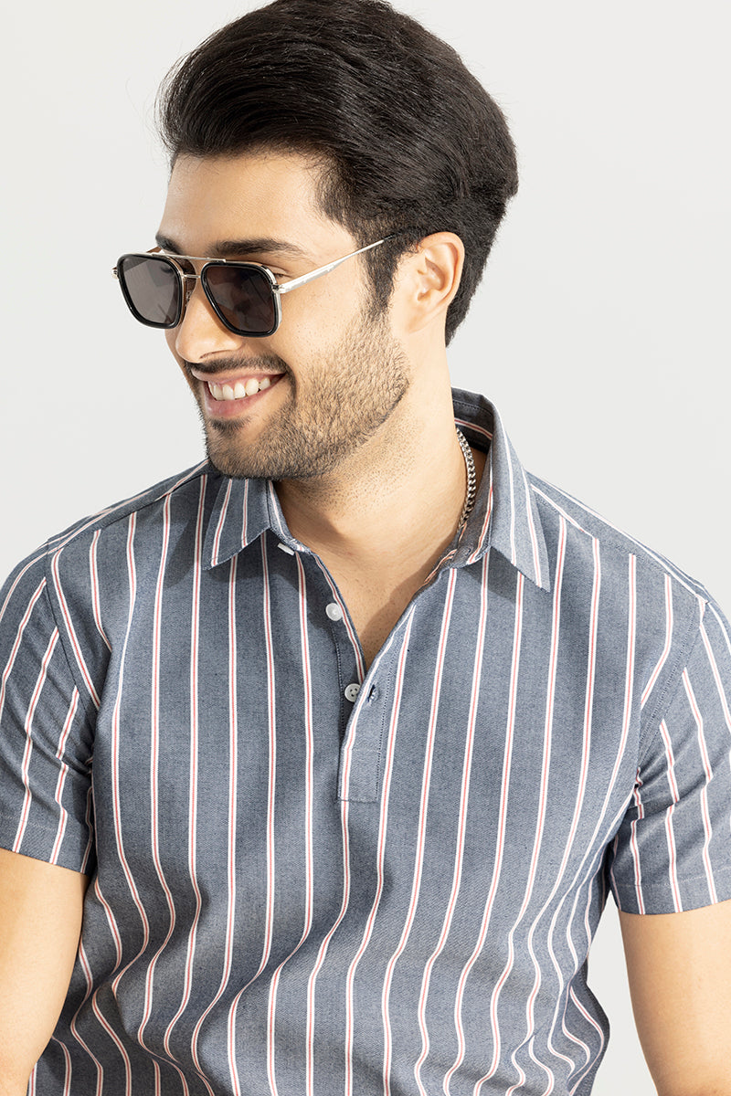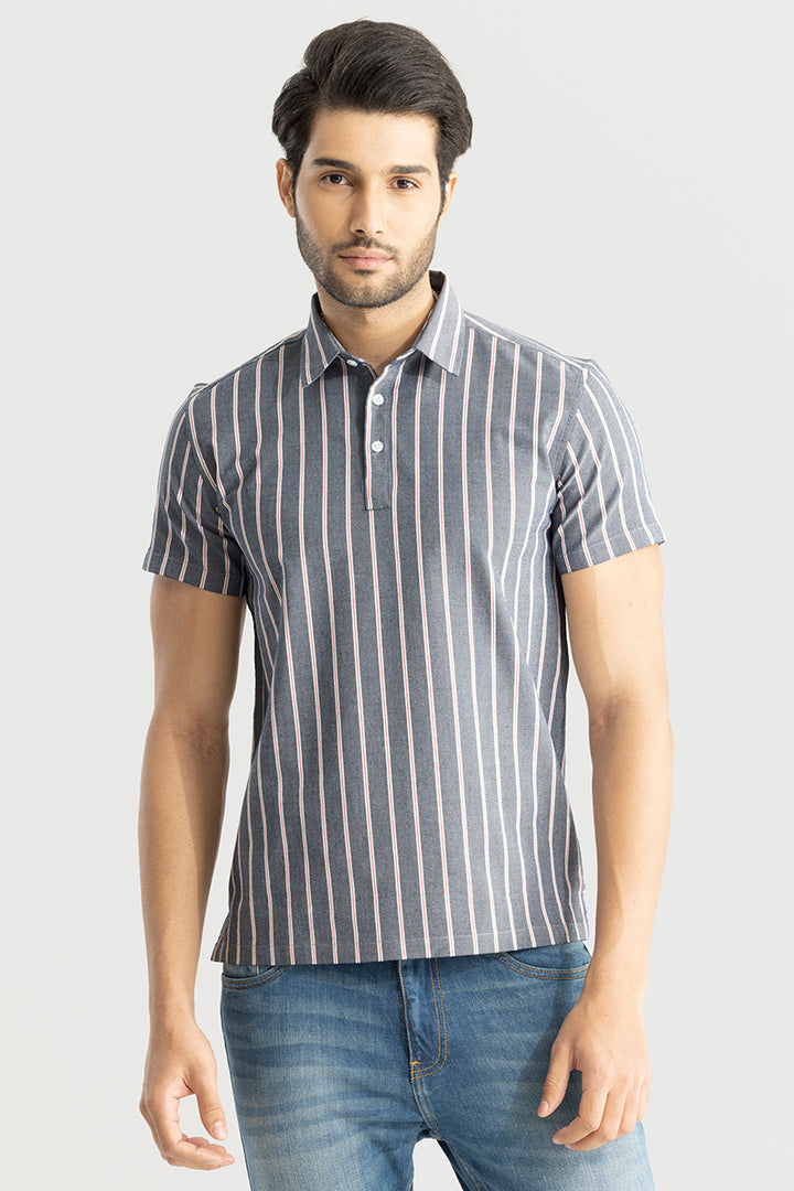 Buy Men's Sleek Stripe Grey Polo T-Shirt Online | SNITCH