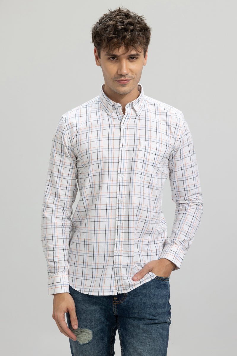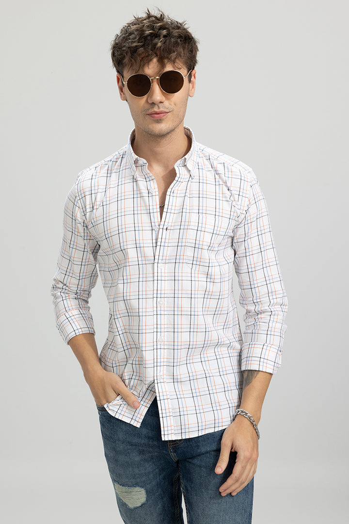 Buy Men's Windowpane Check White Shirt Online | SNITCH